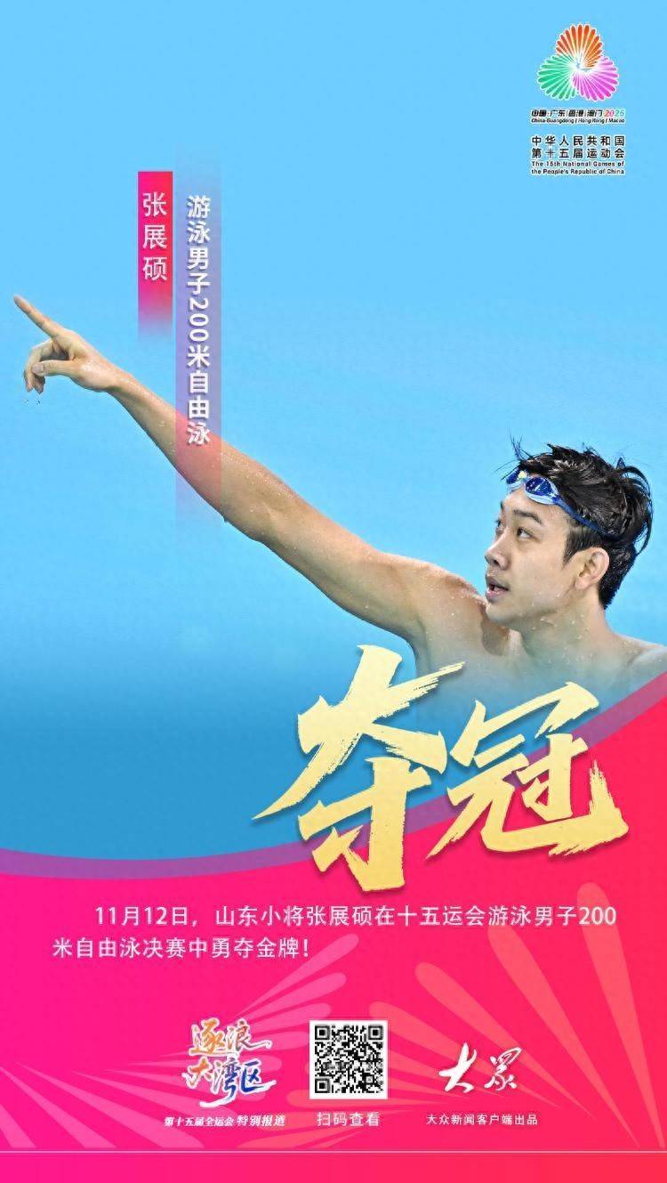 11月12日,山东小将张展硕在十五运会拍浮男人200米解放泳决赛中勇夺金牌!